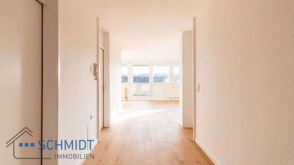 // Moderne Ausstattung und großzügige Raumaufteilung Die Wohnung überzeugt durch ihre lichtdurchflutete, moderne Gestaltung und den offenen Penthouse-Grundriss. Vom großzügigen Flur zweigen das Schlafzimmer, das Badezimmer, die offene Küche sowie das geräumige Wohnzimmer ab. Die kürzlich renovierten Wände und Decken sowie die hochwertig verlegten Vinyl-Böden mit Trittschalldämmung schaffen ein einladendes Ambiente.