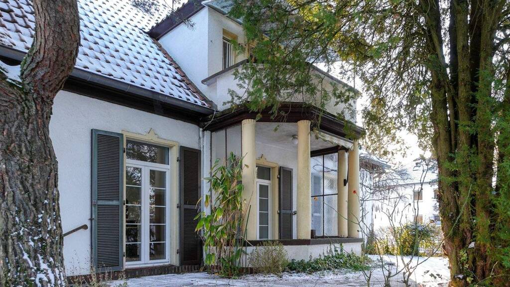 Optisch wirkt das liebenswürdige Haus heute in seinem traditionalistischen Stil wie aus einem Guss und strahlt mit seinen gelungenen Proportionen und klassischen architektonischen Elementen ein ganz besonderes Flair aus. Maßgeblich wirken dabei die symmetrischen, wohlproportionierten Fassaden mit großen Fensterflächen und attraktiven Sprossenfenstern, aber insbesondere auch die authentisch erhaltenen Anbauten an den Längsseiten aus der Entstehungszeit der 1920er Jahre: Der dreieckige Hauseingang an der Ostseite und der über beide Stockwerke reichende Portikus mit charakteristischen, im Stil des Expressionismus verzierten Säulen.