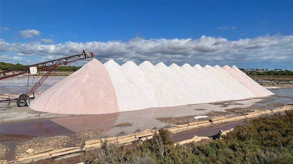 in charakteristischem Rosa schimmernden Salinen von S Avall und die vorgelagerte Insel Cabrera.