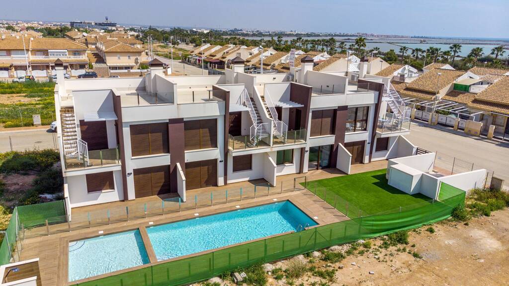 Es handelt sich um eine sehr schöne und exklusive Wohnanlage direkt am Meer. Zur Verfügung stehen Erdgeschosswohnungen und Penthouse im Obergeschoss. Im Erdgeschoss können Sie eine vordere Terrasse zum Grillen und eine hintere Terrasse vor dem Gemeinschaftspool genießen. Diese Wohnanlage verfügt über zwei Gemeinschaftspools und ist somit eine wunderschöne Wohlfühloase, in der Sie einige sehr entspannte Urlaubstage verbringen können. Das obere Penthouse verfügt über eine obere Terrasse (Solarium), auf der Sie eine unglaubliche Aussicht und mehr als 300 Sonnentage im Jahr genießen können.