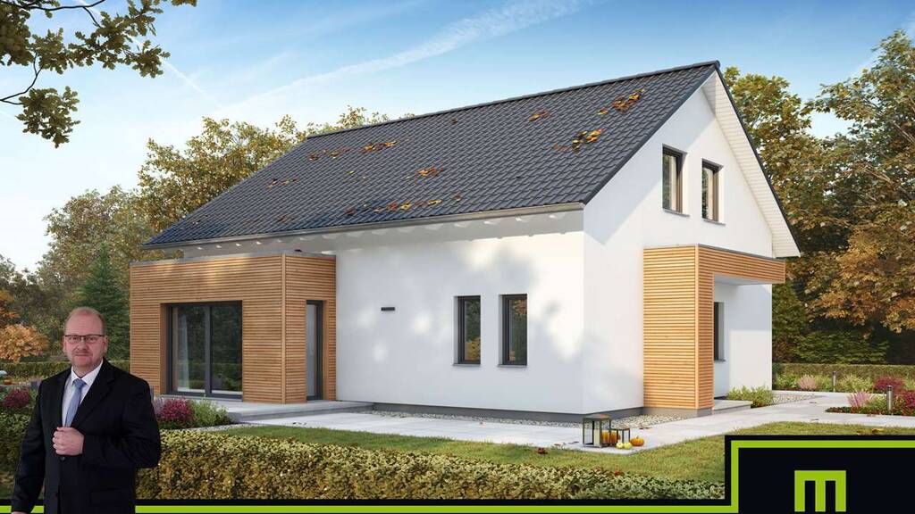 IM ANGEBOT ENTHALTEN: - Dieses tolle projektierte Energiesparhaus (KFW55 optional 40/40+) auf Bodenplatte - inkl. F R E I R A U M - Deckenhöhe 2,75m - inkl. Baugrunduntersuchung - inkl. Architektenleistung - inkl. hochwertiges Pfettendach - inkl. selbst reinigende Dachziegel - inkl. Dachrinnen und Fallrohr aus Titanzink - inkl. Außenputz - inkl. Moderne Haustür in massiver Ausführung mit Edelstahlgriff und Mehrfach Sicherheitsverriegelung - inkl. Dreifachverglaste Wärmeschutzfenster - inkl. Aluminium-Rollläden - inkl. Aussenfensterbänke - inkl. Material Luft-Wasser-Wärmepumpe inkl. Fußbodenheizung - inkl. Material kontrollierter Be- und Entlüftung mit Wärmerückgewinnung - inkl. Material für Sanitärrohinstallation - inkl. Elektropaket inkl. Montage - inkl. Treppe in verschiedenen Design-Varianten inkl. Montage - inkl. Klima-Plus Wände - inkl. Blower Door Test - inkl. Bauleistungsversicherung - inkl. Bauherren-Haftpflichtversicherung - inkl. Wohngebäudeversicherung - inkl. Feuer-Rohbauversicherung - Keller gegen Aufpreis möglich