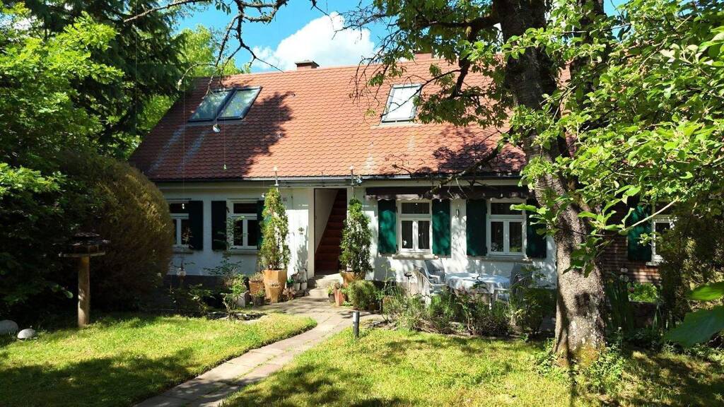 Das besondere Anwesen befindet sich in der Gemeinde Deuringen, einem Ortsteil des beliebten Stadtbergen im Westen von Augsburg. Deuringen liegt auf einer Anhöhe umgeben von Wäldern und bietet ein sehr schönes, gut situiertes Wohnumfeld. Das Anwesen verfügt über insgesamt 1.598 m² Grundstücksfläche, welches mit altem Baumbestand und schöner Bepflanzung sehr schön eingewachsen und uneinsehbar ist. Auf dem Grundstück befindet sich ein 1886 errichtetes Einfamilienhaus mit ca. 150 m² Wohnfläche, welches in massiver Bauweise errichtet wurde. Das Haus verfügt über ein Erdgeschoss mit voll ausgebautem Dachgeschoss. Ein Keller ist nicht vorhanden. Das gesamte Wohnhaus wurde 2012 von einem ausgezeichneten und prämierten Schreinermeister vollständig renoviert und um einen liebevoll beschindelten Anbau im Passiv-Energiehaus-Standart erweitert, wodurch sich das Haus in einem sehr gepflegten und modernen Zustand präsentiert.