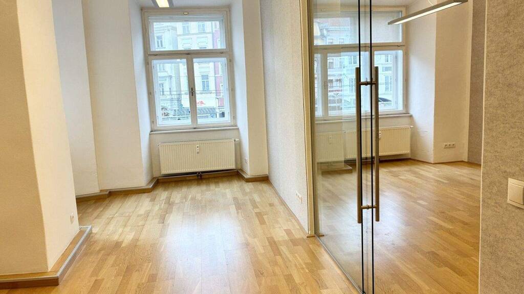 Die Fläche von ca. 55,44 m² überzeugt durch zwei flexibel nutzbare Bürobereiche, die durch eine moderne Glastüre getrennt sind und sowohl konzentrierte Einzelarbeit als auch Teamarbeit ermöglichen. Zusätzlich ist eine eingebaute Küche im vorderen Bereich vorhanden.