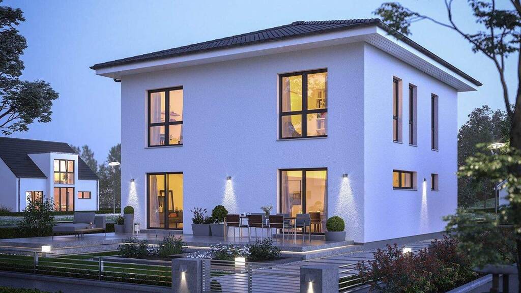 + Ihr Grundstück + Architektenleistungen (Planung, Bauleitung, Bauantrag, Vermessung) + Ihr KfW Niedrigenergie-Effizienzhaus + Bodenplatte inkl. Baugrunduntersuchung und Abdichtung gegen Bodenfeuchte + (Keller auch möglich) + Sockeldämmung der Bodenplatte + Klima-Plus Wände + Hochwertige Dachziegel + Dachrinnen und Fallrohre aus Titanzink + Dreifachverglaste Wärmeschutzfenster + Aluminium Außenfensterbänke + Rollläden + Moderne Haustür in massiver Ausführung mit Edelstahlgriff und mehrfach Sicherheitsverriegelung + Freiraumupgrade: Deckenhöhe 2,75 m + mineralischer Struktur-Außenputz + Kompakte Luft-Wasser-Wärmepumpe (verschiedene Ausführungen möglich) + Elektro-Paket inkl. Installation (deutsche Markenhersteller) + kontrollierter Be- und Entlüftungsanlage für gesundes und angenehmes Wohnklima mit 90% Wärmerückgewinnung, inkl. Installation + Rohinstallation Sanitär für alle Bäder und für die Küche + moderne Vollholztreppe in verschiedenen Farben und Ausführungen möglich + Materiallieferung Dämmung und Beplankung + Blower-Door-Test + Energieausweis + inkl. Bauleistungsversicherung + inkl. Bauherren-Haftpflichtversicherung + inkl. Wohngebäudeversicherung + inkl. Feuer-Rohbauversicherung + inkl. Einkommensschutzversicherung + inkl. 15 Monate Festpreisgarantie + 14 Wochen Lieferzeit! + Innenausbau nach Vereinbarung