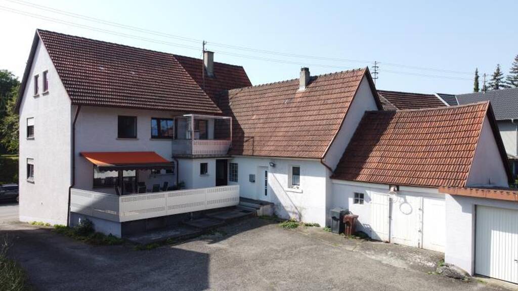 Im Balinger Stadtteil Endingen steht dieses geräumige Zweifamilienhaus mit großem Hofraum und vier Garagen in sonniger Lage mit angrenzendem Bach.