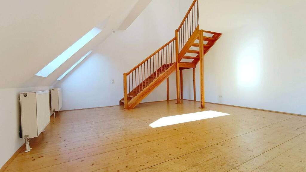 EXTRAVAGENTE DACHGESCHOSS-MAISONETTE FUSSLÄUFIG ZUR CITY (die Fotos zeigen die Wohnung vor der laufenden Renovierung teilweise mit generiertem Einrichtungsvorschlag, das Apartement wird mit Ausnahme der Küche (die Küche auf den Fotos wurde bereits demontiert die neue am 01.05.2026 geliefert) leer vermietet