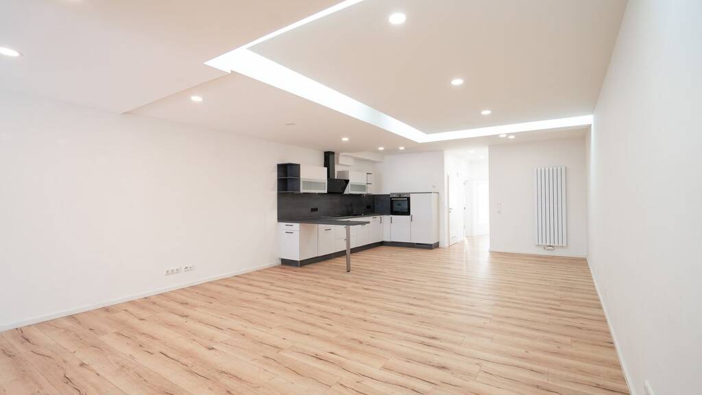 Im ersten Stock angekommen, eröffnet Ihnen die Wohnung einen tollen Blick in ein großes Zimmer mit einem offenen Wohnbereich. Durch diese Bauweise entsteht eine moderne und einladende Wohnatmosphäre.