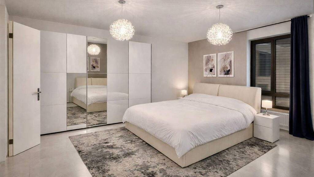 Separates Schlafzimmer mit komfortablem Doppelbett und maßgefertigten Einbauschränken