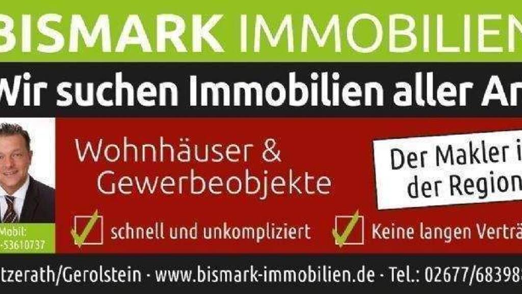 www.Bismark-Immobilien.de Wir suchen ständig Immobilien aller Art ! Ihr Immobilienmakler in der Eifel-Mosel-Hunsrück Region. Auf der Ramm 18 56826 Lutzerath 02677/6839880