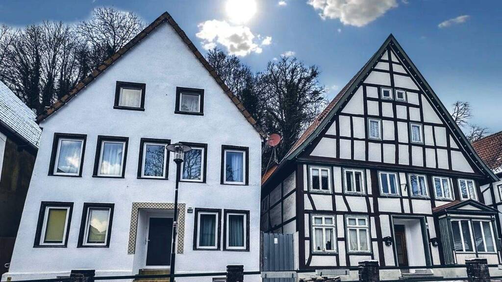 Das erste Haus ist ein denkmalgeschütztes Fachwerkhaus mit einer Wohnfläche von ca. 216 m² und 4 Wohnungen.