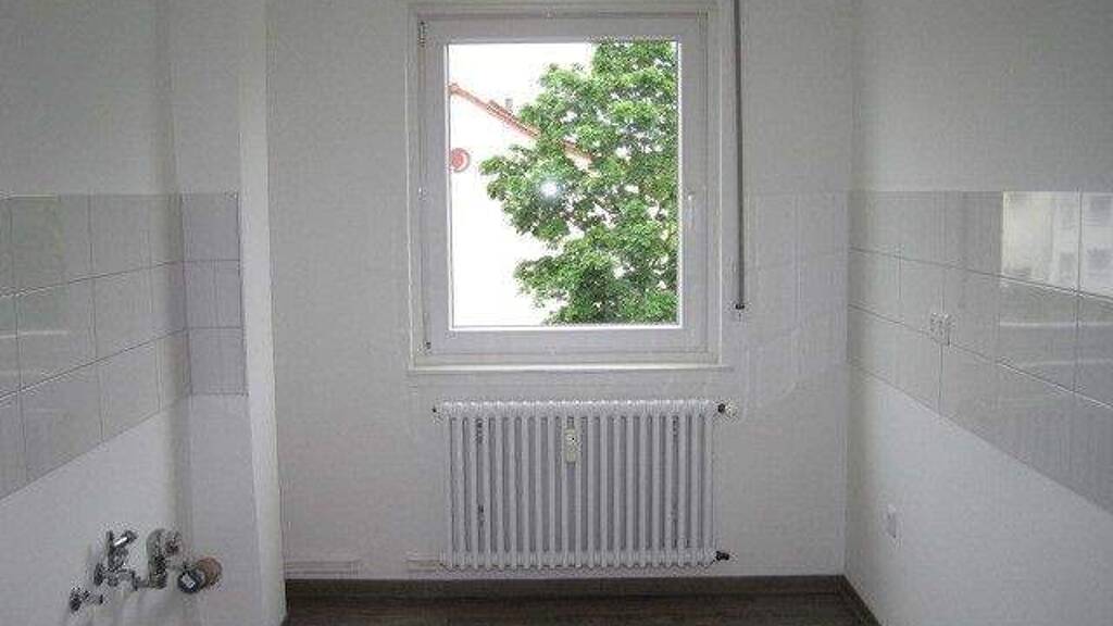 Helle, neu sanierte 3-Zimmer-Wohnung in einem kleineren Mehrfamilienhaus. Die Böden der Wohnung sind mit hellem Design-Vinyl in Holzoptik verlegt und Decken und Wände weiß gestrichen. Das Tageslichtbad ist mit einer Badewanne, Waschtisch und WC ausgestattet.