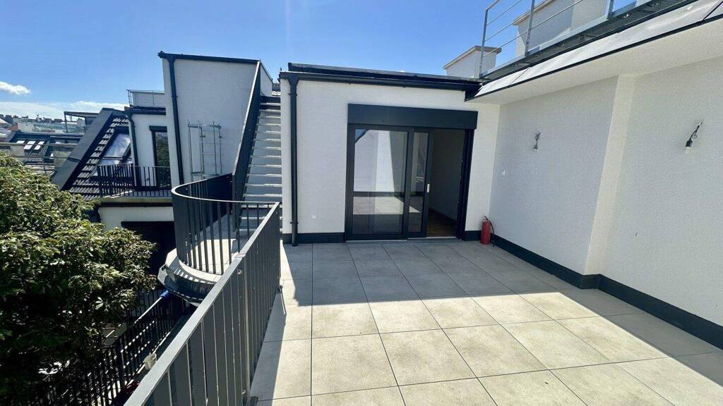 Wenn Sie nach unten schauen, liegt Ihnen die Stadt zu Füßen. Kopf hoch, und der Himmel über Wien ist zum Greifen nah. Genau so und nicht anders präsentiert sich dieses wunderbar angelegte Dachgeschoss mit all seinen Terrassen. In die Wohnung gelangen Sie direkt über den Lift, wir nennen das Ihre persönliche Wohnungsfahrt. Es erwarten Sie zwei Vorräume mit ausreichend Platz für die Garderobe, ein praktischer Abstellraum, drei Schlafzimmer mit jeweils integriertem Badezimmer, ein separates Gäste-WC, sowie der lichtdurchflutete, ca. 74 m² große Wohn-Essbereich, mit Kochgelegenheit und Ausgang zur 37 m² großen Terrasse auf der Wohnebene und Blick in den ruhigen, grünen Innenhof. Von hier aus gelangen Sie auf die magisch schöne Dachterrasse mit ca. 72,5 m² und dem gigantischen Blick über Wien. Auf der Dachterrasse ist alles vorbereitet für Whirlpool, Sauna und Outdoorküche. Speziell der Ausblick ist ein wahrhaftes Privileg und wird Sie rundum begeistern.