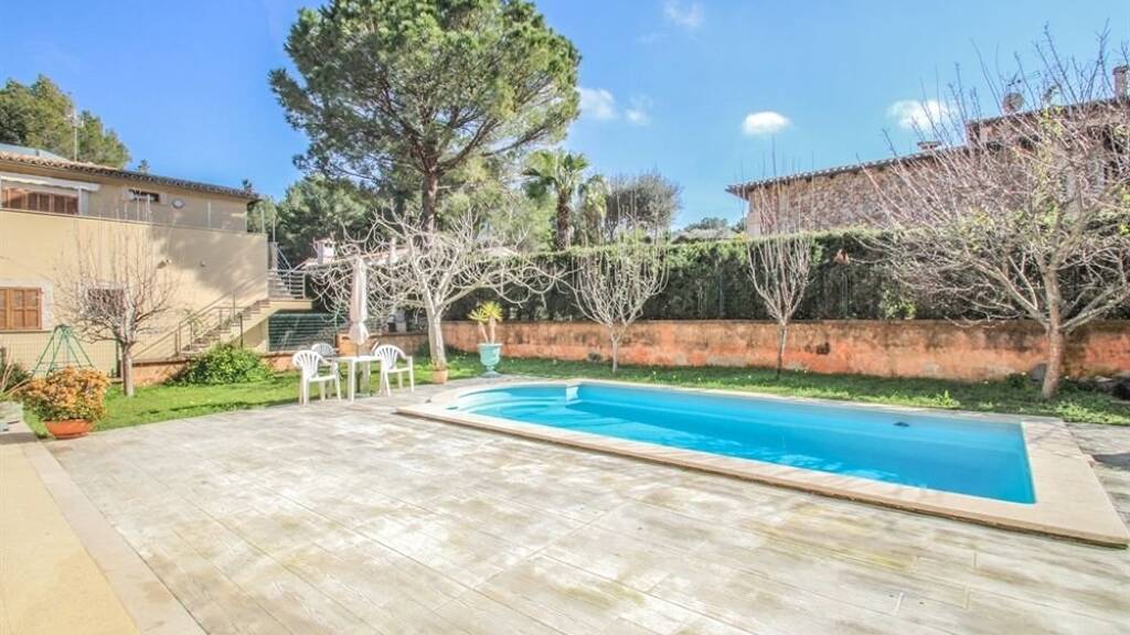 Der halbunterkellerte Bereich verfügt über eine geräumige Garage für mindestens zwei Fahrzeuge sowie einen vielseitig nutzbaren, geschlossenen Raum. Der pflegeleichte Garten erstreckt sich über 612 m² und lädt zum Entspannen am Pool oder zu geselligen Grillabenden ein.