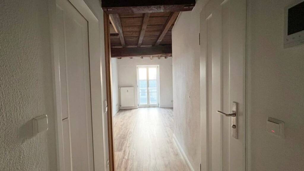 Bereits beim Betreten der Wohnung eröffnet sich eine Atmosphäre, die Wärme, Stil und Individualität ausstrahlt. Auf ca. 46 m² Wohnfläche zzgl. ca. 15 m² weiterer Nutzfläche im ausgebauten Dachgeschossbereich entfaltet sich ein durchdachtes Raumkonzept über zwei Ebenen. Die offene Gestaltung, die sichtbaren massiven Holzbalken und die beeindruckende Dachkonstruktion verleihen den Räumen eine unvergleichliche Ausstrahlung. Hier wohnen Sie nicht in einer Standardimmobilie - hier wohnen Sie in einem architektonischen Unikat.