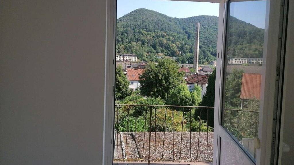 Die Räume wirken durch die großen Fensterelemente besonders hell und großzügig. Ein kleiner Balkon lädt zum Entspannen ein. Der Ausblick in den Pfälzer Wald ist großartig.