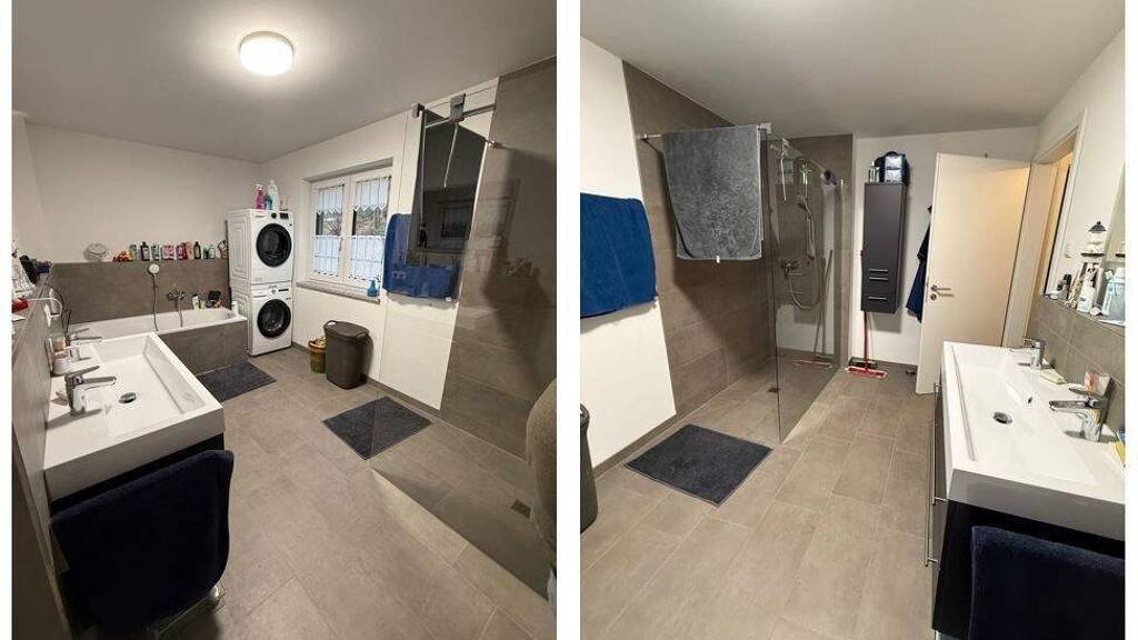 Zwei gut geschnittene Schlafzimmer bieten ausreichend Platz für individuelle Wohnideen und schaffen angenehme Rückzugsorte. Das moderne Badezimmer ist mit hochwertigen Sanitärobjekten ausgestattet und überzeugt durch seine elegante Gestaltung mit bodengleicher Dusche und Badewanne.