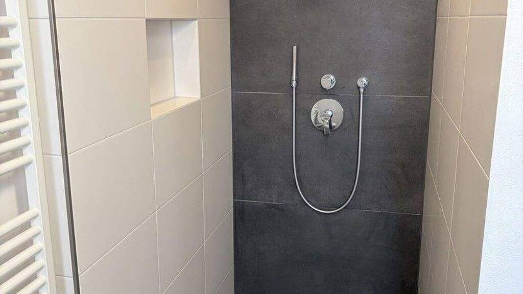 Bad: auf eine Badewanne wurde bewusst verzichtet und stattdessen eine große bodeneben geflieste Walk-In-Regendusche eingebaut. Neben dem Hauptbad mit Dusche, WC und Waschtisch gibt es ein separates Gäste-WC.