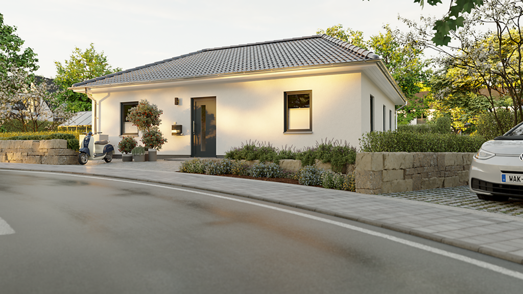 Angeboten wird unser Bungalow 92. Auf einer Ebene mit der Natur, ein Leben ohne Stufen – der Bungalow 92 ist genau das richtige Haus für alle, die auf das Treppen steigen verzichten möchten. In diesem Haus können Sie sich auf 90 Quadratmetern ohne lange Wege wohlfühlen.