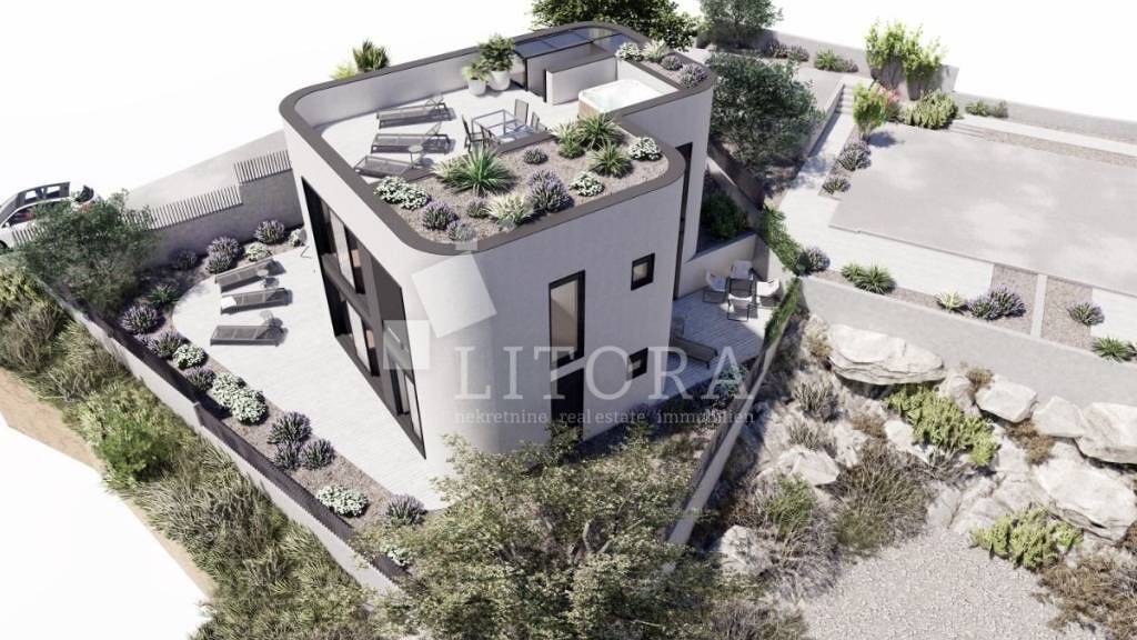 Tisno - ruhige Umgebung, 290 m vom Meer und 450 m vom gepflegten Strand entfernt. Baugrundstück mit einer Fläche von 318 m², direkt an einer asphaltierten Straße gelegen. Das Grundstück weist eine leichte Neigung auf und ist nach Südosten ausgerichtet. Für das Grundstück liegt eine vollständige Projektdokumentation vor, außerdem wurde eine rechtskräftige Baugenehmigung für den Bau eines freistehenden Objekts mit zwei Etagen (E+1) und Dachterrasse erteilt. Geplant sind zwei Wohneinheiten mit einer gesamten Nutzfläche von 266,15 m². Mit dem Bau kann sofort begonnen werden. Für das Grundstück wurde der Gemeinde- und Wasseranschlussbeitrag noch nicht bezahlt. Das Grundstück hat eine regelmäßige Form und ist nur 1000 m vom Ortszentrum entfernt.