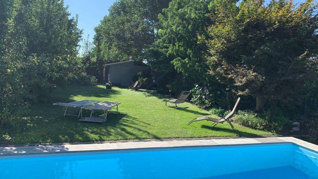 Im gepflegten Garten des Einfamilienhauses befindet sich ein Pool mit Salzanlage sowie ein Gartenhaus, dass zurzeit als Gerätehütte genutzt wird