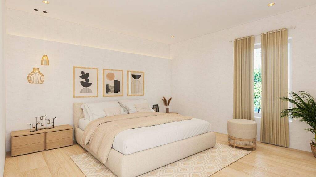 Der offene Küchen- und Essbereich bietet viel Raum für kreative Einrichtungsideen - ganz nach Ihrem persönlichen Stil. Das freundliche Schlafzimmer besticht durch seine ruhige Lage und schafft einen harmonischen Rückzugsort für erholsame Nächte.