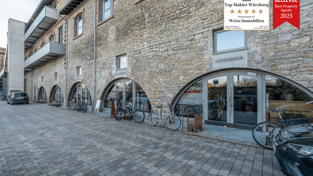 Das Gewerbe (Dienstleistung) liegt in dem modernisierten Kultur- und Kreativzentrum Bürgerbräu in der Zellerau , fußläufig zum Main. Die Nutzfläche von ca. 186qm erstreckt sich über zwei Etagen. Die Gewerbeeinheit ist seit 2015 vermietet. Der jetzige Mieter hat viel investiert und ist an einem langfristigen Mietverhältnis interessiert. Er ist auch offen für eine Mietoption von 3 - 5 Jahre.