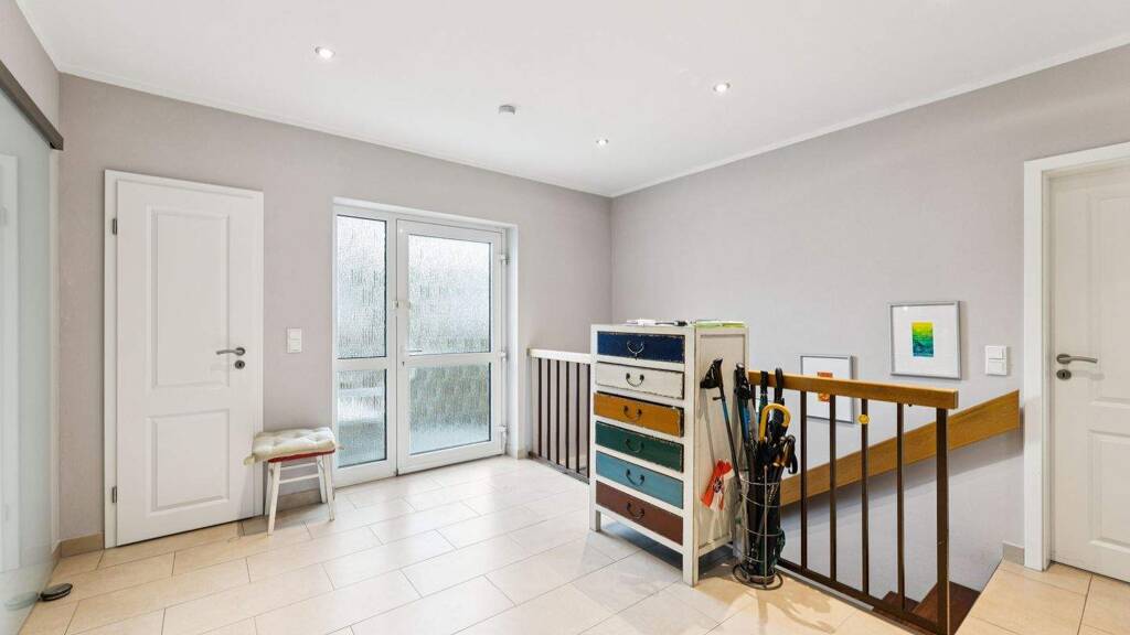 Zwei Bäder auf unterschiedlichen Ebenen sorgen für zusätzliche Alltagstauglichkeit. Das modernisierte Hauptbad fügt sich stimmig ins Gesamtbild ein, während ein weiteres Bad im Untergeschoss den morgendlichen Ablauf spürbar entlastet.