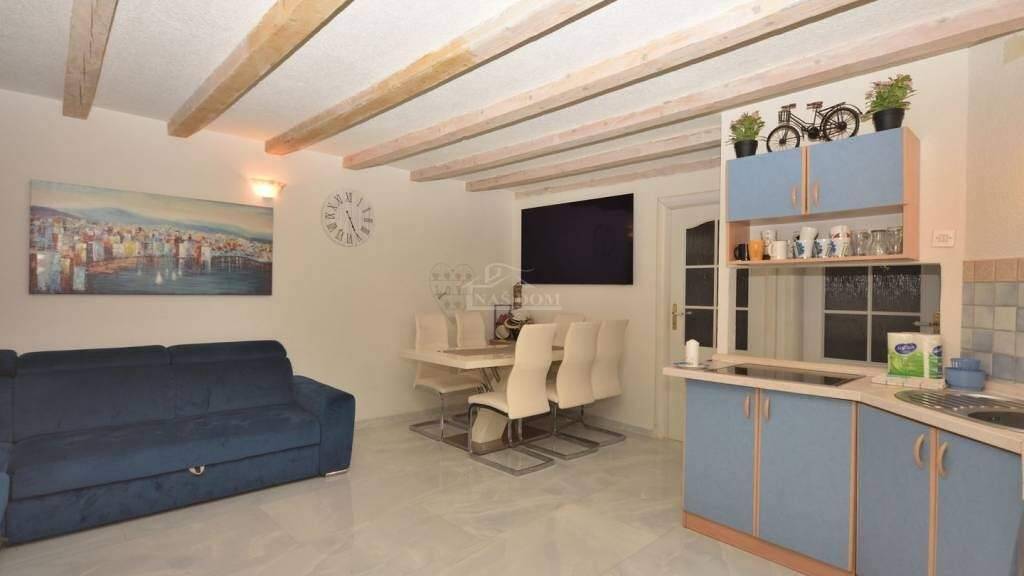 Im Angebot ist eine einzigartige zweistöckige Wohnung im Herzen von Vodice, in einem authentischen Steinhaus gelegen, ideal zum Wohnen, Vermieten oder einer Kombination aus beidem. Die Immobilie bietet einen außergewöhnlichen Wert aufgrund der Möglichkeit, sie als zwei separate Wohneinheiten oder als eine großzügige Wohnung zu nutzen.