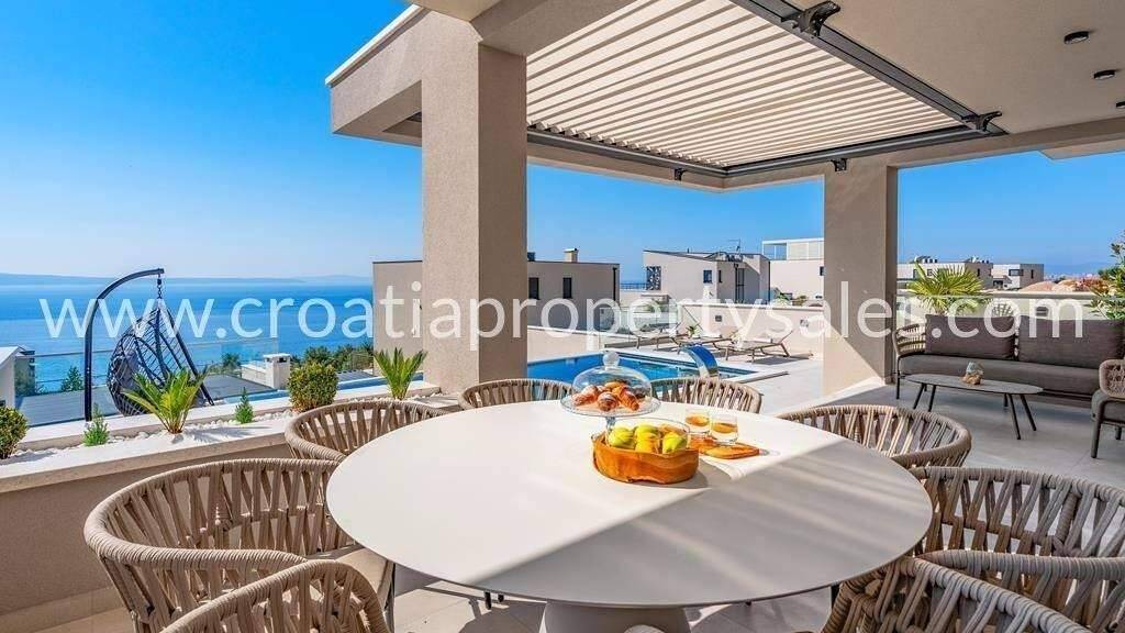 Eine attraktive Villa mit modernem Design, erbaut in einem Villenkomplex in einer kleinen Stadt unweit von Split.