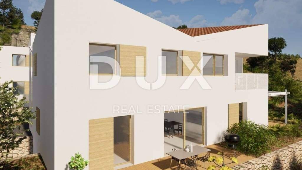 GELEGENHEIT AUF CRES!! Es entsteht ein moderner Neubau mit nur 3 Wohneinheiten. Es liegt am Rande des Grüngürtels und bietet einen wunderschönen Panoramablick auf das Meer und die Bucht von Cres. Der Neubau wird über Garagenstellplätze verfügen, was in der Gegend eine Seltenheit ist! Das Haus erstreckt sich über drei Etagen: eine unterirdische Garage mit Abstellräumen, ein Erdgeschoss bestehend aus zwei kleineren Wohnungen und ein Obergeschoss mit einem Penthouse mit Panoramablick. Wohnung 3 befindet sich im ersten Stock, hat eine Wohnfläche von 109,85 m2 und besteht aus einem Eingangsbereich, Flur, Schlafzimmer mit eigenem Bad, Schlafzimmer mit großem Kleiderschrank und einem weiteren Schlafzimmer von 11,36 m2, zusätzlichem Badezimmer, Abstellraum und großzügigem Wohnbereich mit Küche, Esszimmer und Ruhebereich. Vom Wohnzimmer aus haben Sie Zugang zum Außenbereich einer überdachten Terrasse mit einem unbezahlbaren Blick auf die Bucht. Zu dieser Wohnung gehören in der Garage 2 Stellplätze und ein Abstellraum von 10,67 m2. Die geplante Fertigstellung der Arbeiten ist im Frühjahr 2026. Begrüßen Sie den Sommer in einem modernen Neubau in der Stadt Cres!