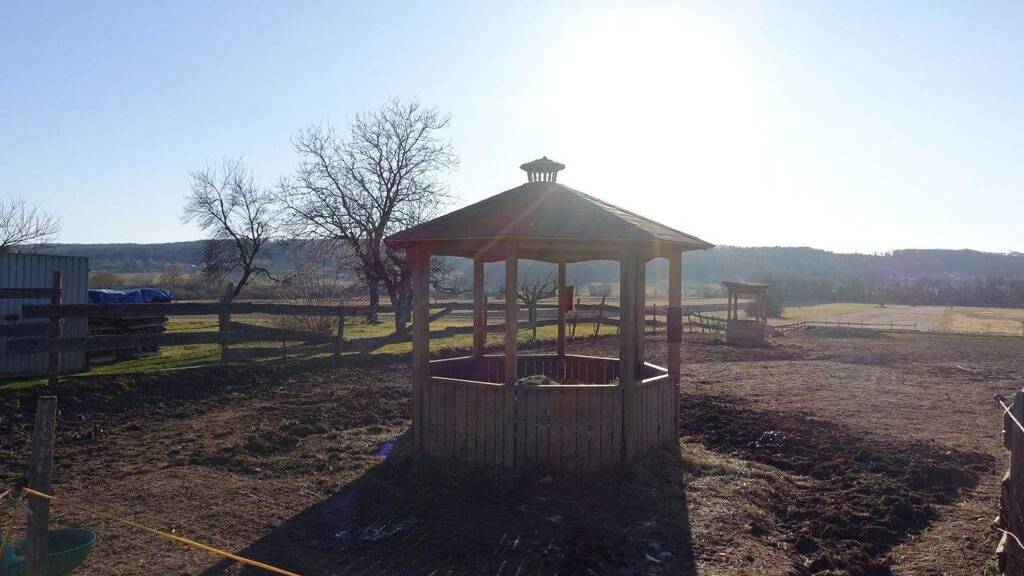 Auf einem weitläufigen Grundstück von über 7.000 m² finden Sie direkt neben dem Wohnhaus eine großzügige Pferdekoppel mit Unterstellplätzen und einem Roundpen. Drei Heuraufen sorgen dafür, dass Ihre Pferde stets gut versorgt sind. Die Tiere leben hier in einer natürlichen Umgebung - Boxen oder geschlossene Ställe sind nicht vorgesehen. Das Grundstück ist komplett eingezäunt, sodass Sie Ihre Pferde auch in den Hausbereich lassen können. Genießen Sie gemeinsame Momente im Garten oder beobachten Sie Ihre Tiere bequem vom Saloon aus!