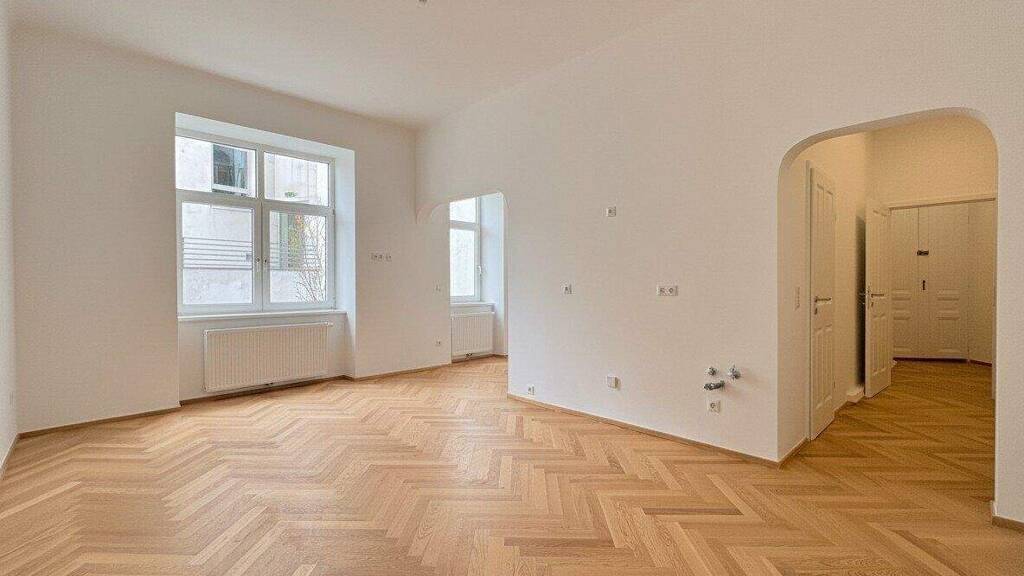 Im ersten Stock (ohne Lift) eines prachtvollen klassischen Altbaus aus der Jahrhundertwende mit verziertem Entrée und gegliederter Fassade befindet sich diese hinreißende, frisch sanierte Wohnung, die man einfach mögen muss! Vollkommen hofseitig und somit eine perfekte Oase zum Runterkommen vom oft stressigen Alltag, mit hohen Räumen und viel Licht lädt sie dazu ein, sich hier, gleich ums Eck vom 9. Bezirk, ein gemütliches Nest zu bauen. Die Wohnung zeigt, was Altbau kann - eine Nische hier, ein Bogen da und alles, nur nicht 08/15.