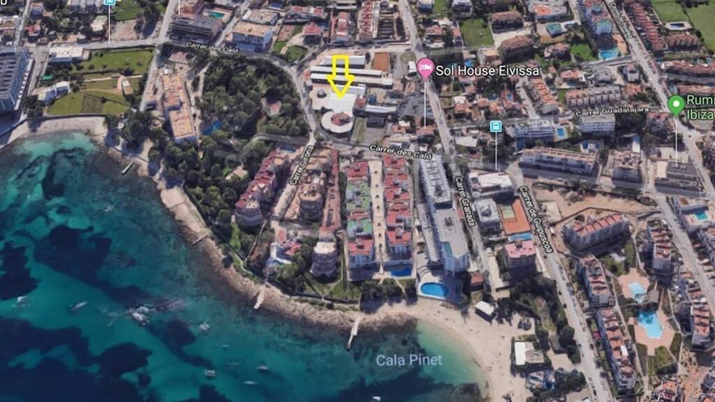 Grundstück in Cala de Bou, Sant Josep, 12.300 qm. Es handelt sich um ein städtisches Grundstück mit 2 Gebäuden mit einer Lizenz für eine Diskothek, einen Partyraum, ein Café-Konzert und ein Restaurant, sowie 2 Räumlichkeiten mit einer Lizenz für den Verkauf von Geschenkartikeln.