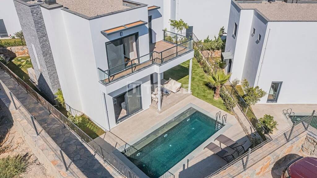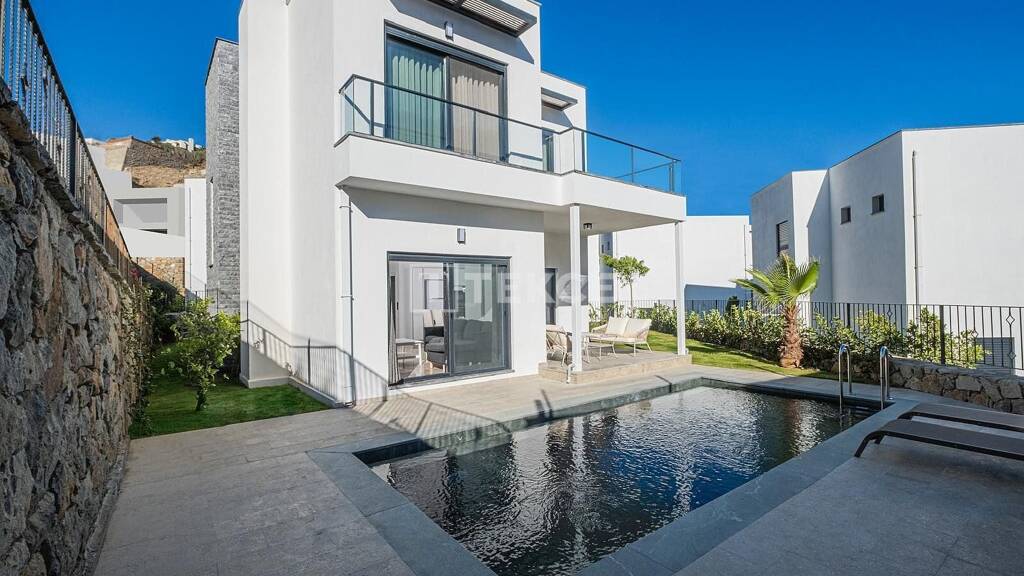 Kurzbeschreibung Freistehende Villen in Bodrum Mugla sind in Laufnähe zum Strand und bieten Meerblick an. Die von Bäumen umgebenen, gepflegten und modern gestalteten Villen haben ein Privatpool und einen Garten. Objekt Villen mit Meerblick und Pool in Bodrum, nur wenige Gehminuten vom Strand entfernt