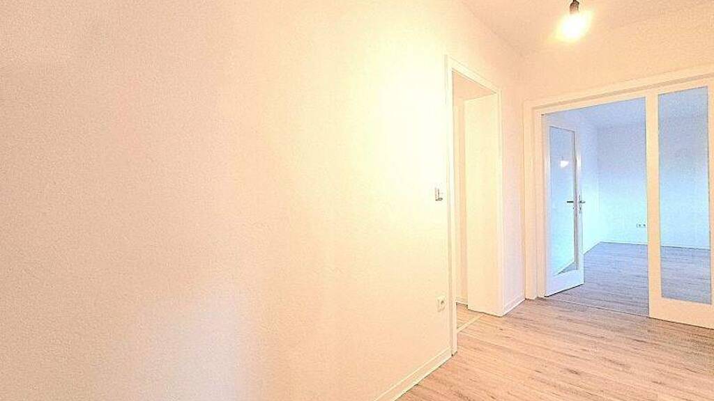Die Wohnung wurde umfassend saniert und präsentiert sich in einem neuwertigen Zustand. Moderne Bodenbeläge, frisch gestrichene Wände sowie ein zeitgemäß ausgestattetes Bad verleihen der Immobilie ein freundliches und einladendes Flair.