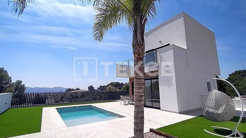 Kurzbeschreibung Diese sofort bezugsfertige freistehenden Villen liegen in der schönen Stadt La Nucia, nahe des Strandes und der Stadt, und bieten beeindruckende Merkmale wie private Schwimmbäder an. Objekt Freistehende Villen mit Panoramablick auf das Meer in La Nucia, Alicante