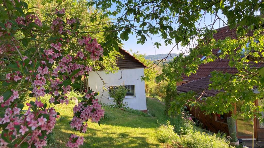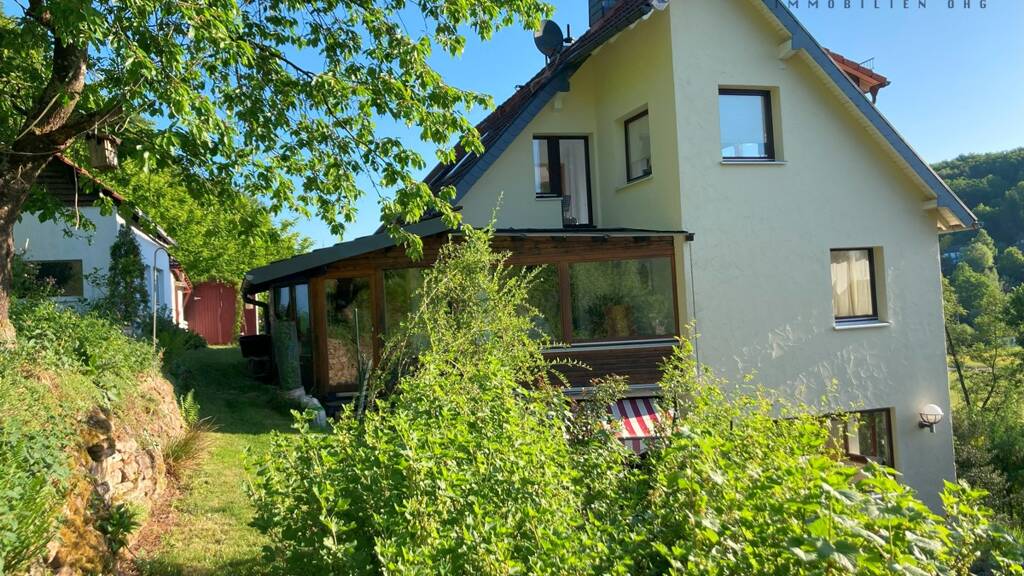 Das Haus ist teilunterkellert und bietet neben drei Kellerräumen auch eine separate Waschküche. Das rund 1.900 m² große Grundstück ist ein echtes Highlight: Terrassiert angelegt, mit eigenem Zugang zum angrenzenden Wald, bietet es zahlreiche Möglichkeiten für Erholung und Gartenfreude. Zwei Geräteschuppen, ein kleines Backhaus und ein gemütlicher Freisitz sorgen für zusätzlichen Nutzwert. Eine lange Einfahrt führt seitlich am Haus entlang bis in den hinteren Gartenbereich und bietet ausreichend Platz für Fahrzeuge.