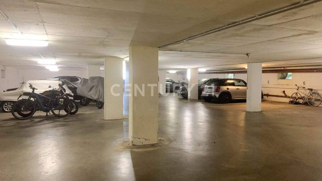 Insgesamt befinden sich 17 Stellplätze in der Garage. Die Abmessungen betragen jeweils ca. 4,88 Meter Länge und ca. 2,45 Meter Breite. Die Durchfahrtshöhe von ca. 1,98 Meter ermöglicht auch Zufahrt mit einem marktgängigen SUV. Die Garage ist mit elektrischem Torantrieb ausgestattet, der sowohl über Fernbedienung als auch manuell bedienbar ist.