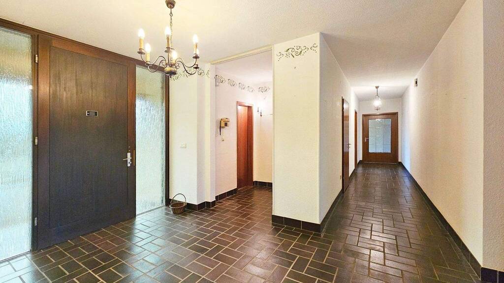 Der großzügige Bungalow aus dem Baujahr 1974 liegt auf einem ca. 1.418 m² großen Grundstück. Mit einer Wohnfläche von rund 235 m² inklusive Terrassen bietet die Immobilie viel Platz zum Wohlfühlen und eignet sich ideal für Familien, Paare oder alle, die großzügiges Wohnen in ruhiger Umgebung schätzen. Der Eingangsbereich empfängt mit einer geräumigen Diele, Garderobe und Gäste-WC. Von hier aus öffnet sich der große, lichtdurchflutete Wohnbereich mit Kamin und einem schönen Blick auf die Terrasse und in den Garten. Der angrenzende Essbereich hat Zugang zu einer weiteren, kleineren Terrassenfläche sowie zum Garten. In diesem Bereich ist auch die Küche angeordnet, wodurch kurze Wege und ein angenehmer Wohnfluss entstehen. Auf der gegenüberliegenden Seite des Bungalows befinden sich insgesamt fünf Zimmer, die flexibel als Schlaf-, Kinder-, Arbeits- oder Gästezimmer genutzt werden können. Eines der Schlafzimmer verfügt über ein angrenzendes Ankleidezimmer, das zusätzlichen Komfort und Stauraum bietet. Ergänzt wird dieser Bereich durch ein modernes Hauptbadezimmer sowie ein separates Duschbad. Das Haupt-Bad wurde ca. 2018 modernisiert und ist mit einer begehbaren Badewanne mit Tür, einer ebenerdigen Dusche sowie Fußbodenheizung ausgestattet und ergibt somit hohen Wohnkomfort. Ein Innen- und Außenkamin schafft eine behagliche Atmosphäre zu jeder Jahreszeit. Die Terrasse ist mit einer neuwertigen elektrischen Markise ausgestattet und lädt zum entspannten Verweilen im Freien ein. Der freigiebige Garten bietet viel Platz für Erholung, Freizeit und individuelle Gestaltung. Der voll unterkellerte Bereich erweitert das Nutzungsspektrum der Immobilie erheblich. Hier stehen unter anderem eine Sauna, ein Partyraum sowie ein Kellerraum mit integriertem Kühlraum zur Verfügung.