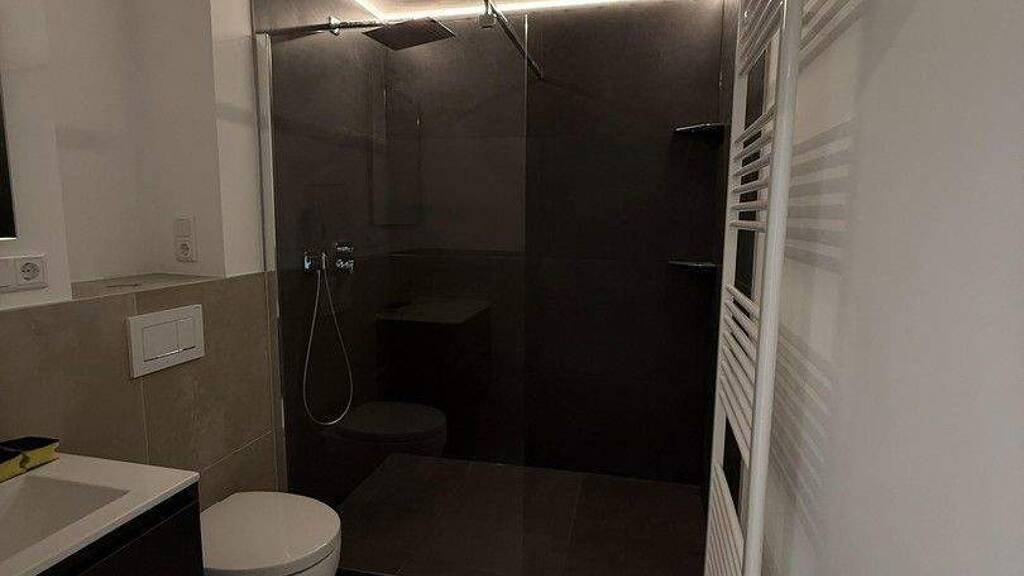 Das Badezimmer ist vollständig neu gestaltet und verfügt über eine moderne, begehbare Dusche. Zusätzlich sind im Bad sowie im Flur elegante LED-Spots verbaut.