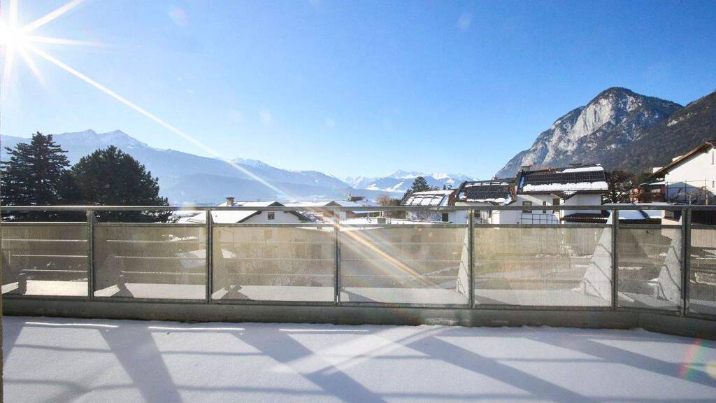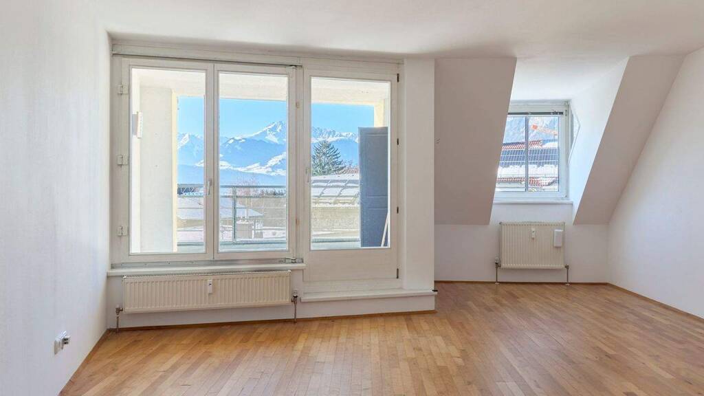 Diese großzügige Dachgeschosswohnung im 2. Obergeschoss bietet auf 101,54 m² Wohnfläche ein durchdachtes Raumkonzept sowie eine beeindruckende rund 21 m² große Westterrasse mit viel Sonne und herrlicher Aussicht. Die Wohnung präsentiert sich als wahres Raumwunder und überzeugt durch Helligkeit, Weitblick und Wohnqualität. Das gepflegte Mehrparteienhaus mit insgesamt 33 Wohneinheiten wurde 1998 von der renommierten Bauträgerfirma tebau errichtet und befindet sich in sehr gutem Gesamtzustand. Die Wohn- und Schlafräume sind überwiegend nach Südwesten ausgerichtet und dadurch besonders lichtdurchflutet. Badezimmer und Kinderzimmer verfügen zusätzlich über eine Lichtkuppel, die für natürliche Belichtung und einen freien Blick in den Himmel sorgt. Herzstück der Wohnung ist das ca. 29 m² große Wohnzimmer mit Kaminanschluss für einen gemütlichen Schwedenofen. Von hier aus gelangt man sowohl auf die geschützte 5,27 m² große Loggia als auch auf die großzügige Terrasse. Ergänzt wird das Raumangebot durch eine separat gelegene, 13,42 m² große Küche mit ausreichend Platz für einen Ess- oder Frühstückstisch. Ein größeres Elternschlafzimmer und 2 weitere Zimmer sind mit herrlichem Bergblick verwöhnt. Das Badezimmer ist mit einer Badewanne, Waschbecken und WC ausgestattet, zusätzlich steht ein separates, zweites Tages-WC zur Verfügung. Die Beheizung erfolgt mittels Gas und wird über Radiatoren verteilt. Gang und Bad, WC sind mit elektrischer Fußbodenheizung installiert. Die Wohnung befindet sich in einer gut erschlossenen Wohnlage mit schneller Anbindung an öffentliche Verkehrsmittel, Einkaufsmöglichkeiten sowie Freizeit- und Erholungseinrichtungen. Aufgrund der attraktiven Lage, der großzügigen Außenflächen und der durchdachten Raumaufteilung eignet sich diese Immobilie sowohl zur Eigennutzung als auch als wertstabile Kapitalanlage. Monatliche Betriebskosten inkl. 1 TG Stp.: EUR 427.- Im Kaufpreis ist ein TG Stellplatz inkludiert, ein Zweiter kann erworben werden.
