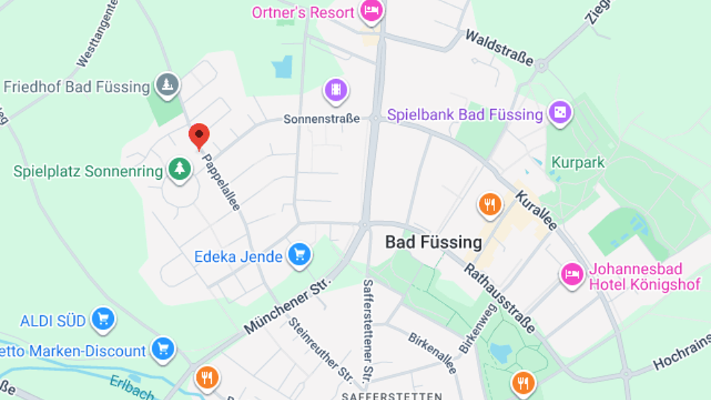 Die Einfahrt zur Tiefgarage befindet sich direkt an der Pappelallee in Bad Füssing. Am Eingang befindet sich ein elektrisches Rolltor, welches sich mit einer eigenen Funkfernbedienung oder einem Schlüssel öffnen lässt. Dieses ist abgeschlossen und einbruchssicher.