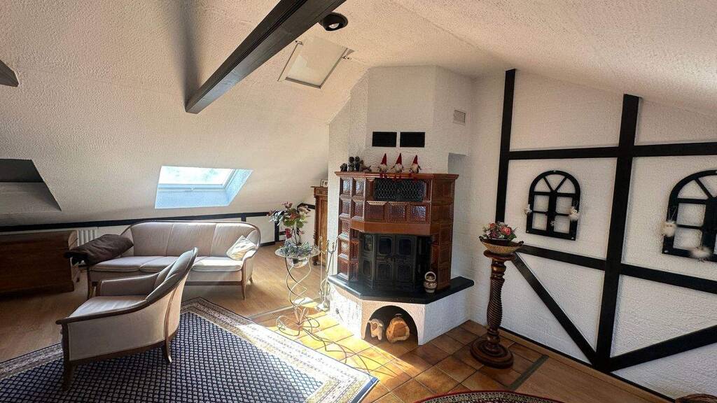 Ein besonderer Mehrwert ist das ausgebaute Dachgeschoss. Dieser großzügige Bereich wurde bislang als großes Kaminzimmer genutzt - gewissermaßen als zweites Wohnzimmer im Haus: Rückzug, Ruhe, Atmosphäre. Der Kamin ist derzeit außer Betrieb und beim zuständigen Schornsteinfeger ausgetragen, da das Dachgeschoss in den letzten Jahren nur selten genutzt wurde. Eine Wiederinbetriebnahme ist grundsätzlich möglich und setzt die übliche technische Prüfung sowie Wiederanmeldung voraus. Ob Wohnstudio, Arbeitsbereich, Gäste-/Schlafzimmer oder Familien-Rückzugsraum - diese Ebene schafft spürbare Flexibilität.