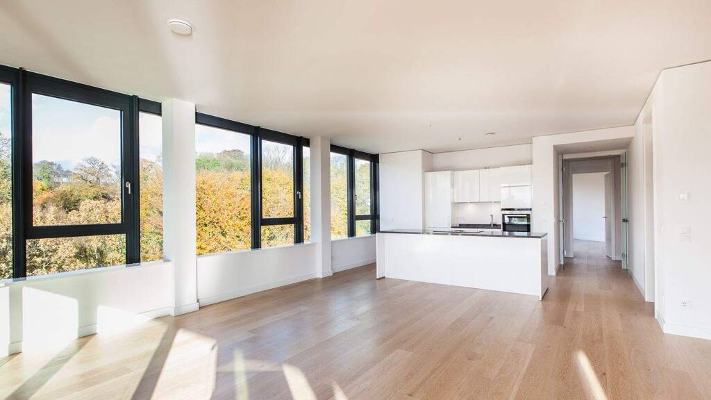 Geräumiger Wohn- und Essbereich mit edlem Eiche-Parkettboden und einer weißen Hochglanz-Nolte-Küche mit neuester Technik. Großzügige Fensterfronten und verglaste Balkonelemente ermöglichen aus allen Wohnungen einen einmaligen Blick auf die lebhafte Elbschifffahrt. Edles Design setzt sich auch in den Bädern fort. Elektrischer Sonnenschutz, Fußbodenheizung mit integrierter Kühlfunktion und eine zentrale Wohnraumbelüftung schaffen ein angenehmes Raumklima. Die Parkplatzsuche entfällt: In der viergeschossigen Tiefgarage stehen für die Mieter PKW-Stellplätze und Abstellräume zur Verfügung, die bequem über Fahrstühle erreichbar sind.