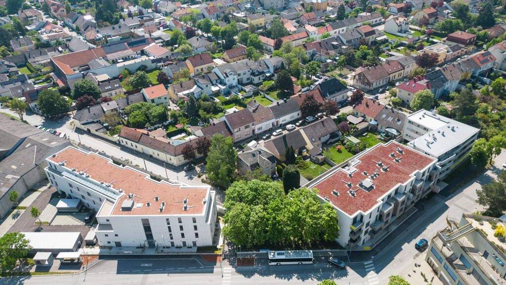 Wohnen im Weinviertel - naturnah & stadtnah zugleich Quality Living von Raiffeisen Wohnbau verbindet die Ruhe des Weinviertels mit der schnellen Anbindung an Wien. Auf einem Grundstück von rund 3.900 m², in unmittelbarer Nähe zum Bahnhof, entstanden zwei moderne Wohnprojekte mit insgesamt 46 Eigentumswohnungen sowie einer Arztpraxis mit separatem Eingang. Die Wohnungen überzeugen durch großzügige Freiflächen wie Balkone, Terrassen oder Eigengärten. Dank des vielfältigen Wohnungsmixes aus 2-, 3- und 4-Zimmer-Einheiten finden Familien, Paare und Singles hier ihr ideales Zuhause. Ein grüner Gemeinschaftsgarten mit altem Kastanienbestand sorgt für Schatten und Erholung im Sommer. Lärchenholzakzente an der Fassade und eine hochwertige Ausstattung - darunter Echtholzparkett, Fußbodenheizung, Raffstores bzw. Rollläden im Erdgeschoss und eine Klimaanlagenvorbereitung im Dachgeschoss - schaffen ein stilvolles und komfortables Wohnambiente.
