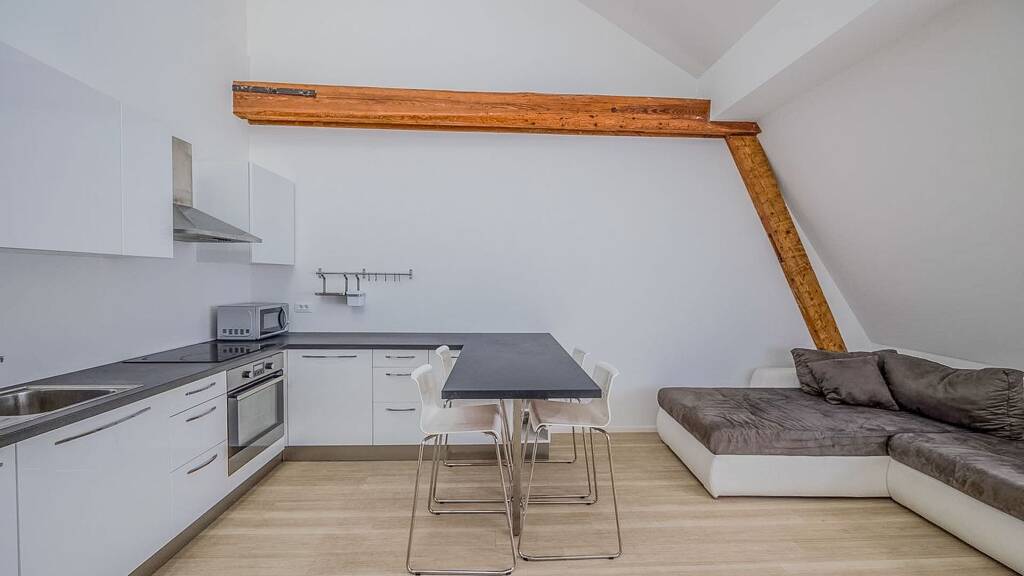 Die Wohnung erstreckt sich über den dritten und vierten Stock, leider ohne Aufzug, aber lassen Sie sich nicht davon abhalten, denn was Sie erwartet, ist eine wahre Wohlfühloase abseits des Stadtlärms.