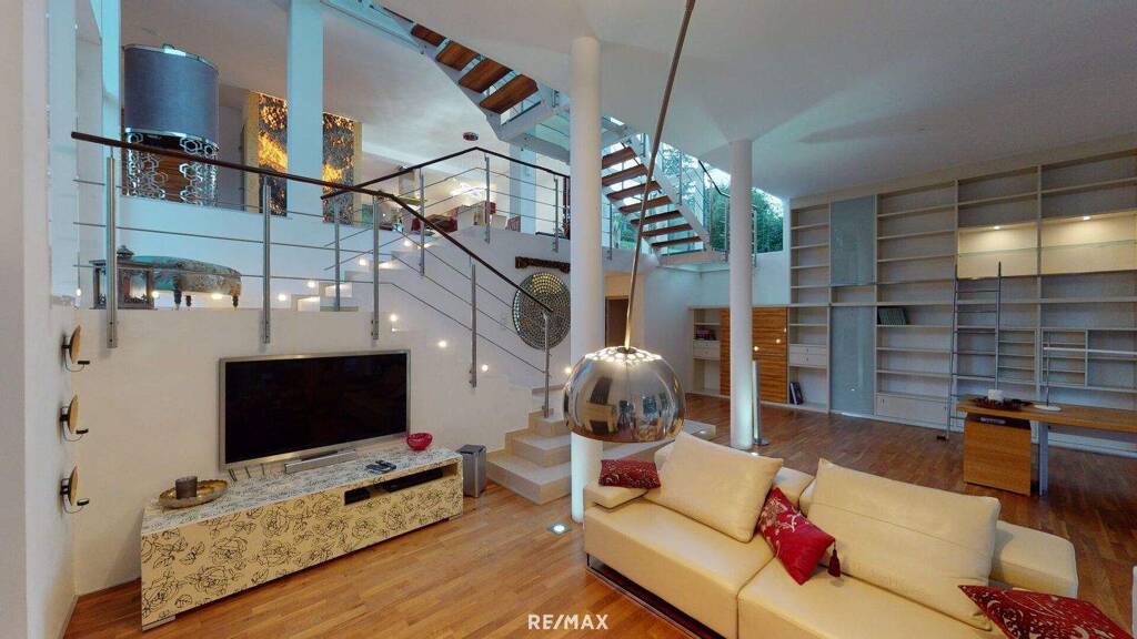 Auf fast 400 m² Wohnfläche erwarten Sie erlesene Ausstattungsdetails: edle Holzböden, exklusive Sanitärausstattung, ausgewählte Designer-Möbel und fein abgestimmte Materialien, die Ästhetik und Wohnkomfort perfekt vereinen.
