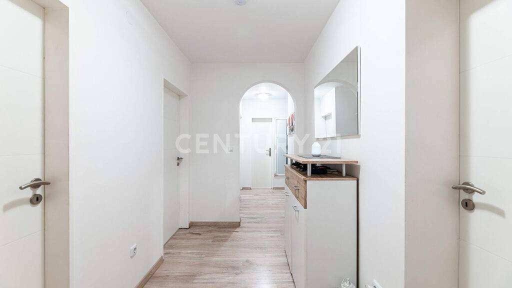 Beim Betreten der rund 92 m² großen Wohnung werden Sie von einem geräumigen Flur empfangen, der einen praktischen Zugang zu allen Räumen bietet. Hier findet sich zudem ausreichend Platz für eine Garderobe.