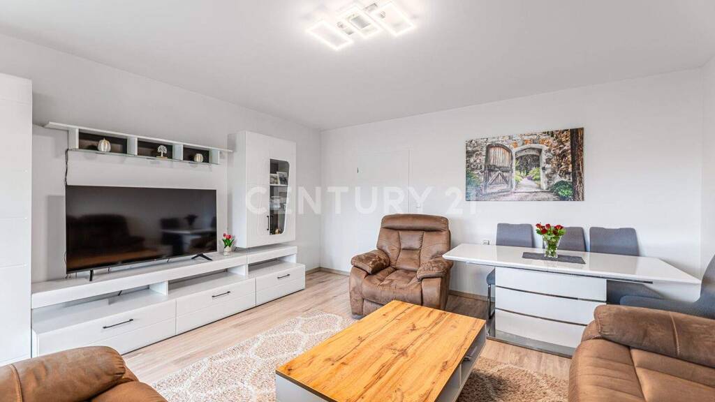 Das großzügige Wohnzimmer überzeugt durch seine angenehme Helligkeit und den direkten Zugang zum Balkon, der zum Verweilen im Freien einlädt.