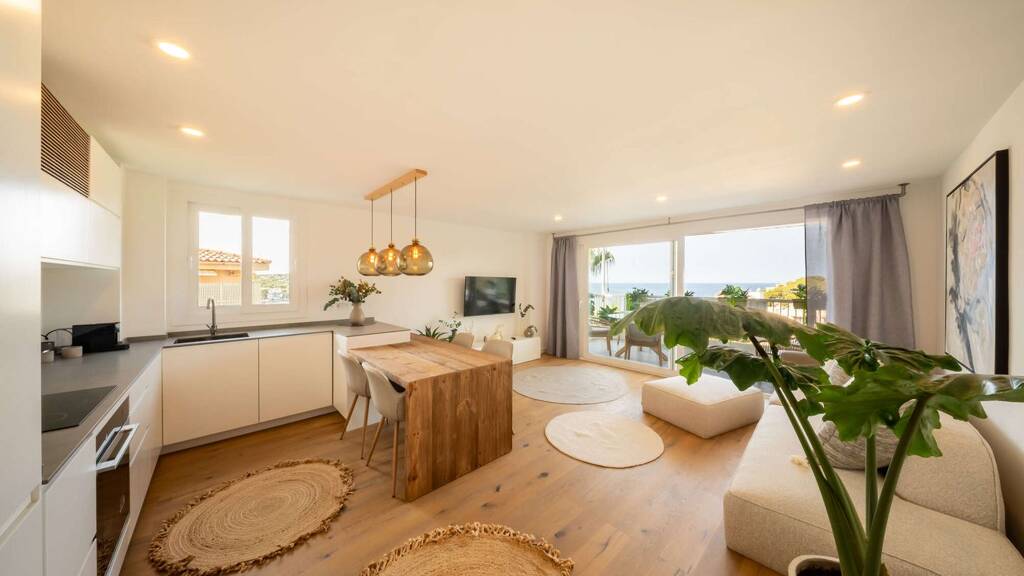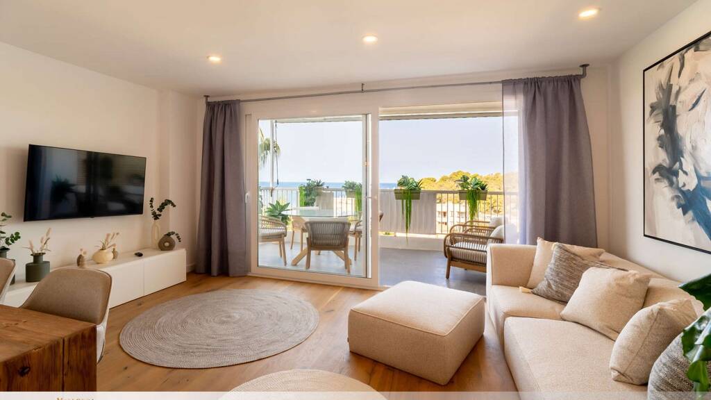 Stellen Sie sich vor, wie Sie in einer traumhaft kernsanierten Wohnung in Santa Ponsa aufwachen - stilvoll, hochwertig möbliert und mit einem atemberaubenden Meerblick. Diese exklusive Immobilie ist komplett EINGERICHTET und sofort bezugsbereit - einfach ankommen, auspacken und genießen!